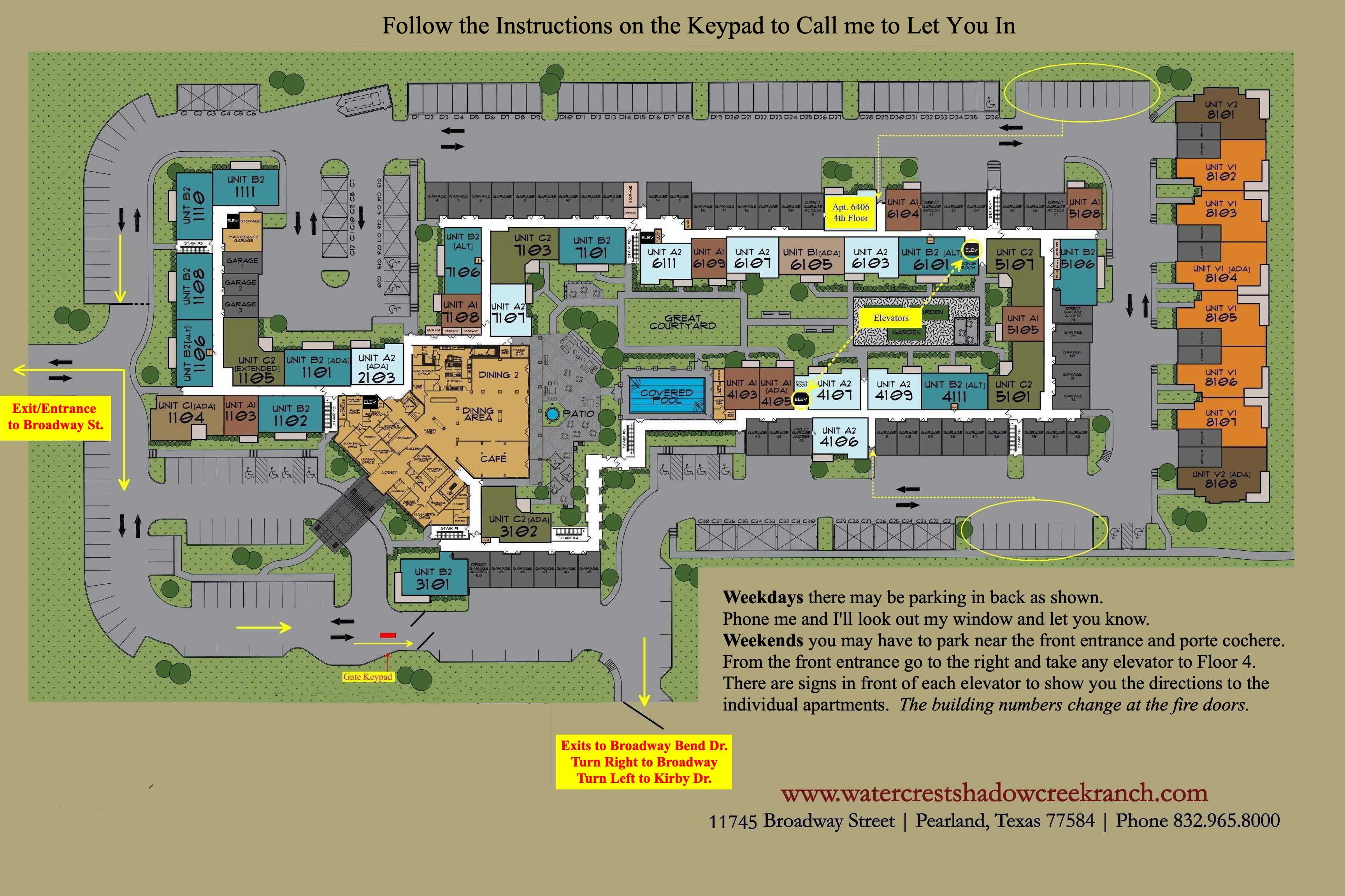 Turn right on Broadway and look for Watercrest on your right.